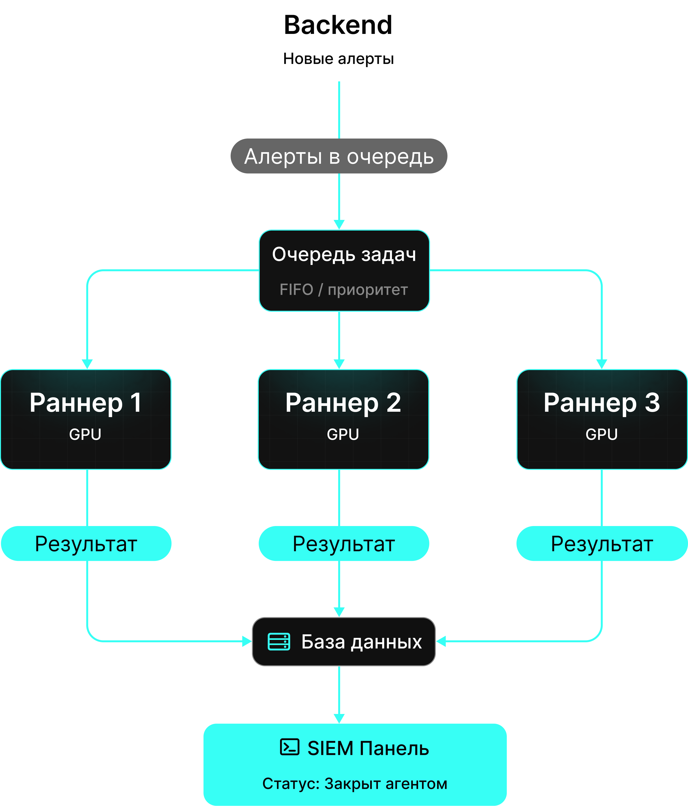 Синий Агент подключается к потоку алертов ещё до того, как они попадают к аналитику. На этапе приёма: